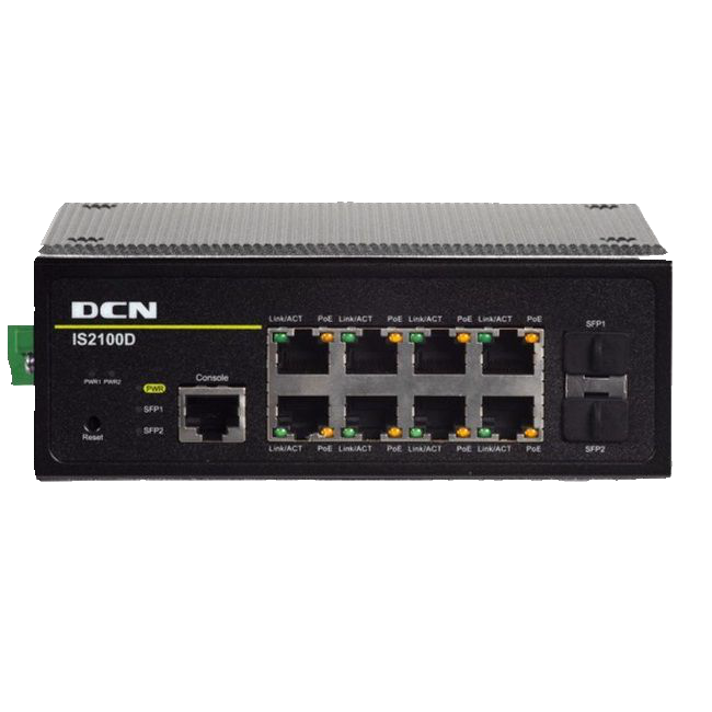 IS2100D-2GF8TX-P IS2100D-2GF8TX-P 卡轨式POE工业以太网交换机,(8个百兆电口+2个千兆SFP口) 全部电口支持最大30W (802.3at标准)供电,最大PoE供电功率180W