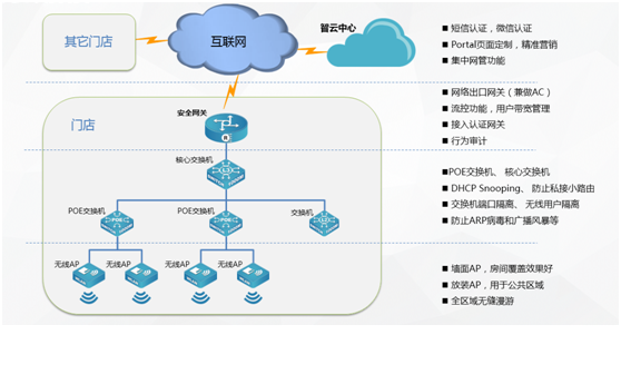 面对移动互联网大潮对传统行业的冲击,运用云计算、移动社交、大数据分析等技术,为酒店、餐饮、休闲娱乐、零售商超等商业市场客户构建基础网络平台,加速商业市场客户业务创新和转型已经刻不容缓,BG大游集团智云商业解决方案志在为商业客户给予最强的用户体验,给予最具商业价值的云网络,给予基于portal认证,短信、微信营销功能。